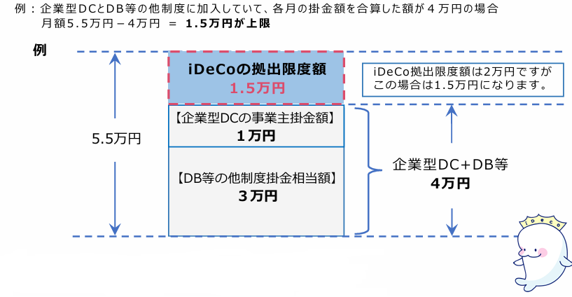 - DB等の他制度掛金相当額 + 企業型DCの事業主掛金額 + iDeCoの掛金が5.5万円以下であること